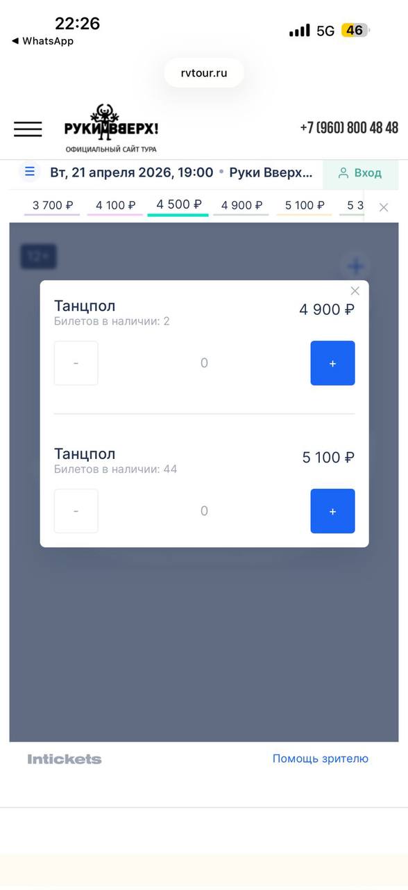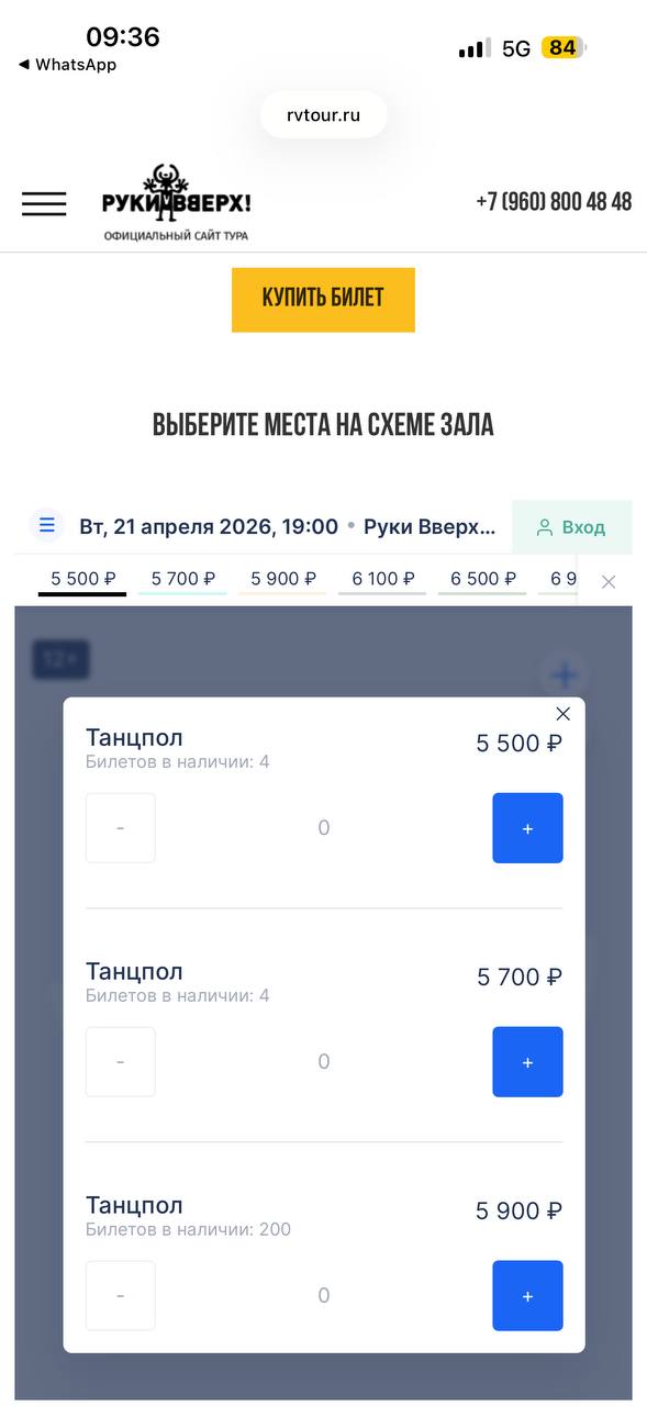 — Подскажите, что происходит с билетами на танцпол концерта "Руки Вверх"? Вчера танцпол с начала продажи стоил 4300 и с каждой минутой дорожает и дорожает, меняется наличие мест, то уменьшается до 1 человека, то увеличивается до 244, это что сбой или какой-то трюк, который не знаю. Сейчас, допустим, стоит 5700 — 5900 уже, и мест в наличии очень также много, — поделился якутянин.