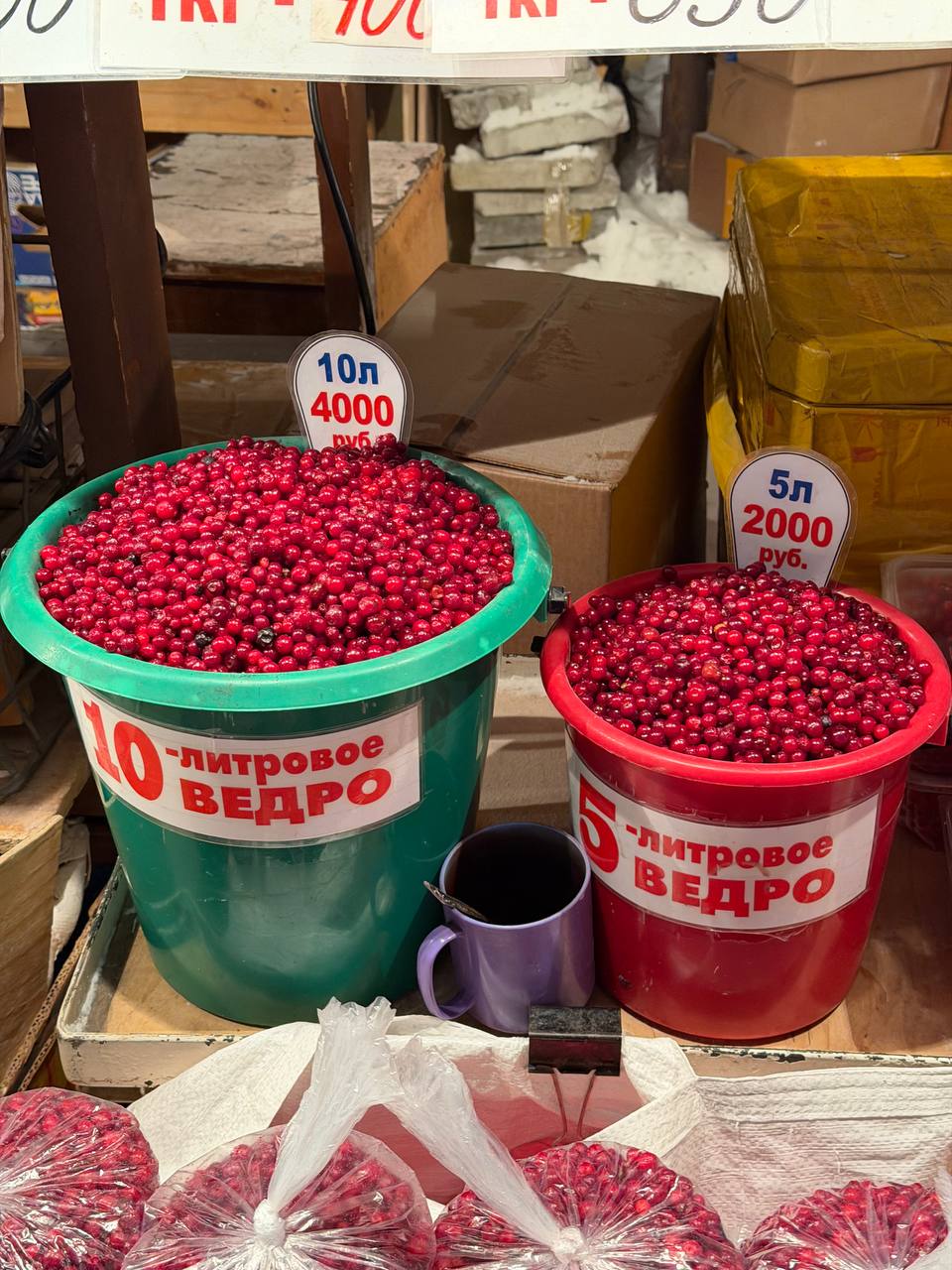 Брусника продаётся по 650 рублей за килограмм. Ведро объёмом 5 литров обойдётся в 2000 рублей, 10 литров — 4000 рублей.