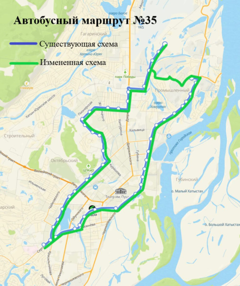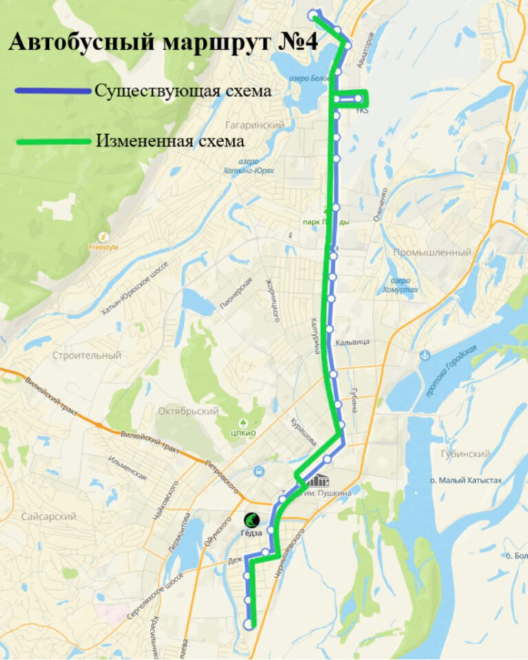 По-новому автобусы начнут ездить с первого дня следующей недели — 18 ноября. Схема движения маршрута №12 выглядит так: с конечной остановки «2-я дамба» по улицам Хатын-Юряхское шоссе — Курнатовского — Севастопольская — Можайского — автостраде 50 лет Октября — Дзержинского — проспекту Ленина — Петровского — Лермонтова — Каландаришвили — Винокурова — Лонгинова — Ильменская — Билибина — Сергеляхскому шоссе — Вилюйскому тракту — Хатын-Юряхскому шоссе — до конечной остановки «2-я дамба».