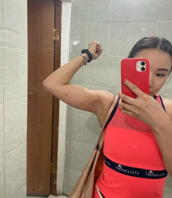 На фото: Анастасия с синяками на руке