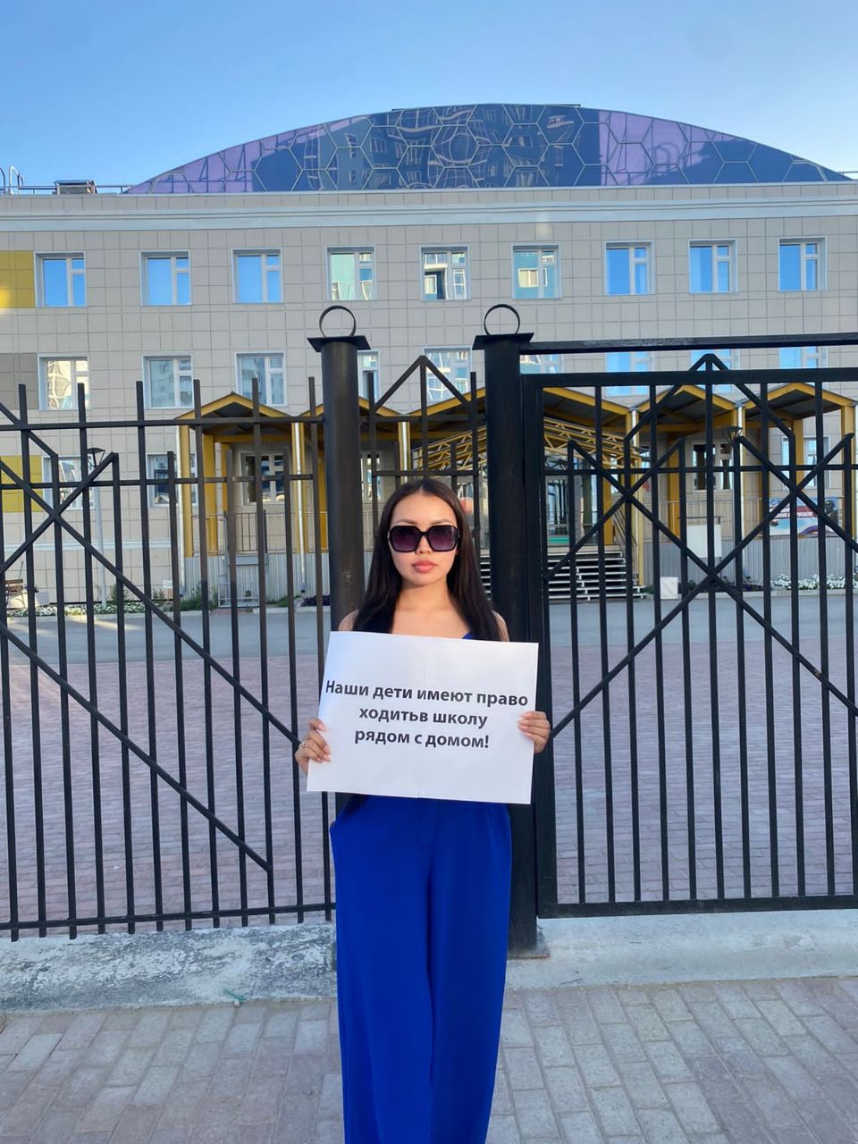 Жительница микрорайона Уйгулаана Иванова решилась на одиночный пикет, она тоже хочет, чтобы ее дети учились рядом с домом.