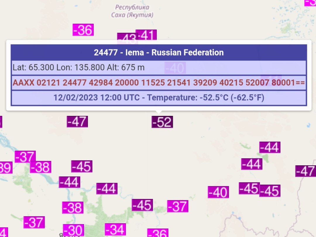 На метеостанции «Иэма» Томпонского улуса вчера в 21:00 по якутскому времени было зарегистрировано -52.5°C.