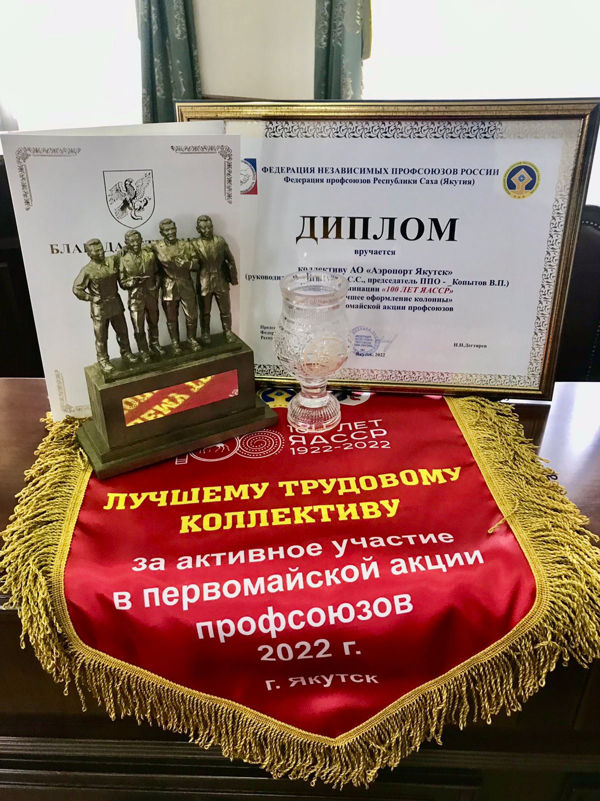 Коллектив АО “Аэропорт Якутск” награжден Дипломом “За лучшее оформление колонны” по итогам городской первомайской демонстрации трудящихся. Награждение прошло сегодня, 5 мая, в мэрии г. Якутска.