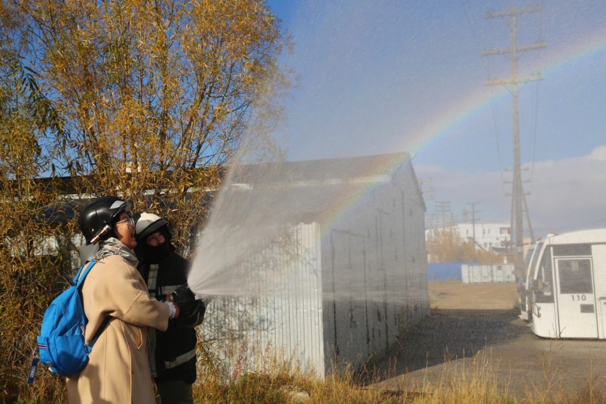 Затем посетили Службу противопожарного аварийно-спасательного обеспечения полетов, примерили боевку пожарных и даже попробовали себя в роли огнеборцев с брандспойтом!