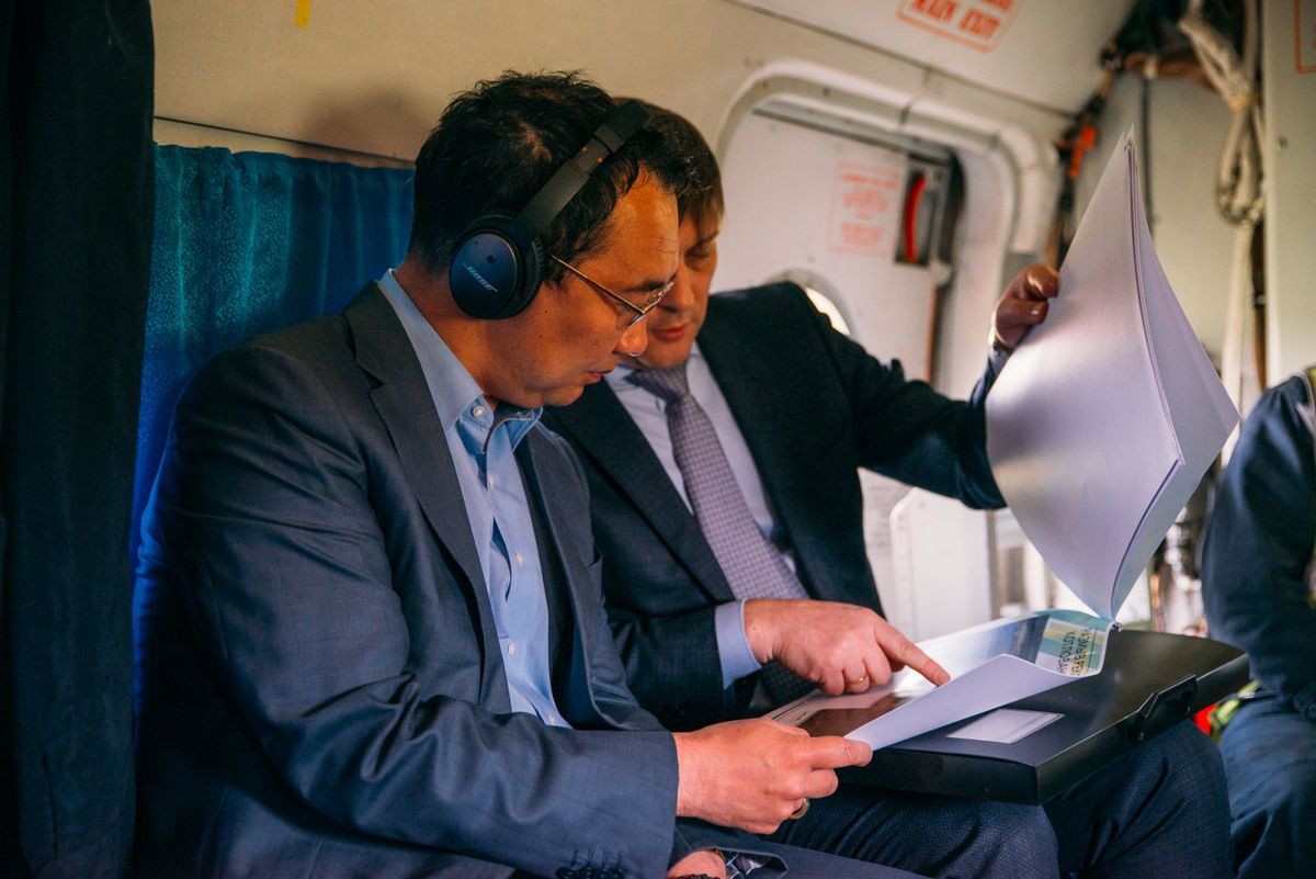 До совещания руководитель Якутии вместе с первым вице-президентом – исполнительным директором АК «АЛРОСА» ПАО Игорем Соболевым совершили облёт территорий прорыва дамб дражных полигонов на загрязненных реках.