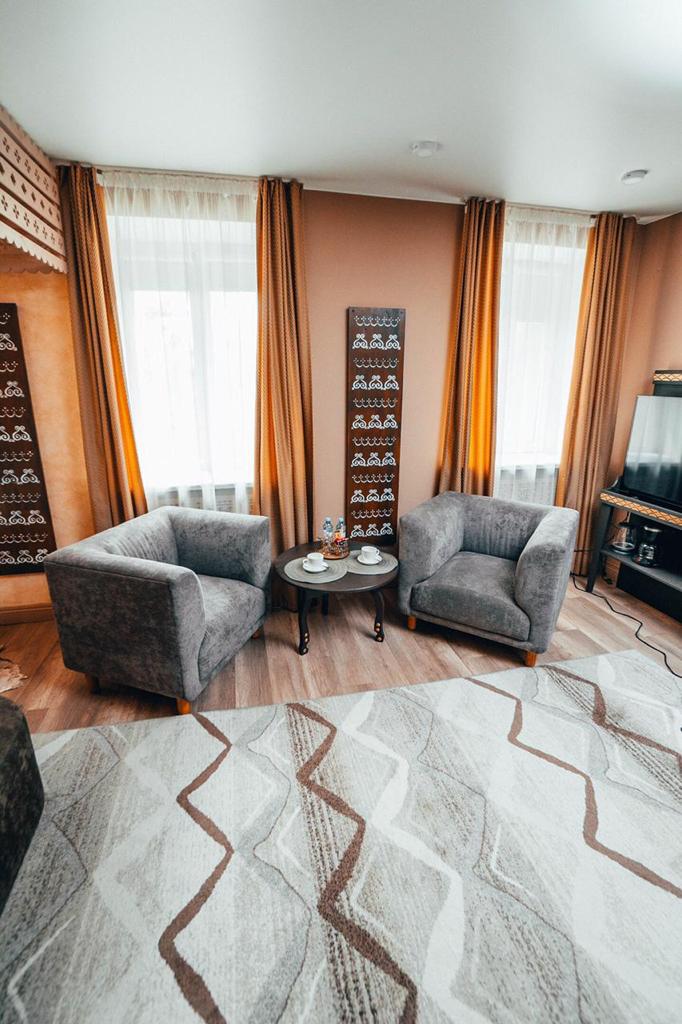 Интерьер гостиницы правдоподобно и до мелочей окунает в национальный колорит настолько, что у тебя появляется желание узнать о Якутии больше. Примерить на себя роль якутского коренного жителя можно благодаря национальным костюмам, которые предоставляются в отеле абсолютно бесплатно, а искусно оформленные локации могут послужить отличным местом для тематической фотосессии.