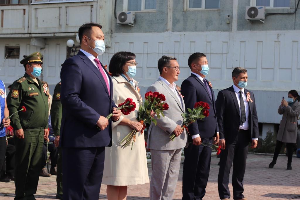 Альберт Семенов принял участие в торжественной церемонии возложения цветов к памятнику воинам-якутянам