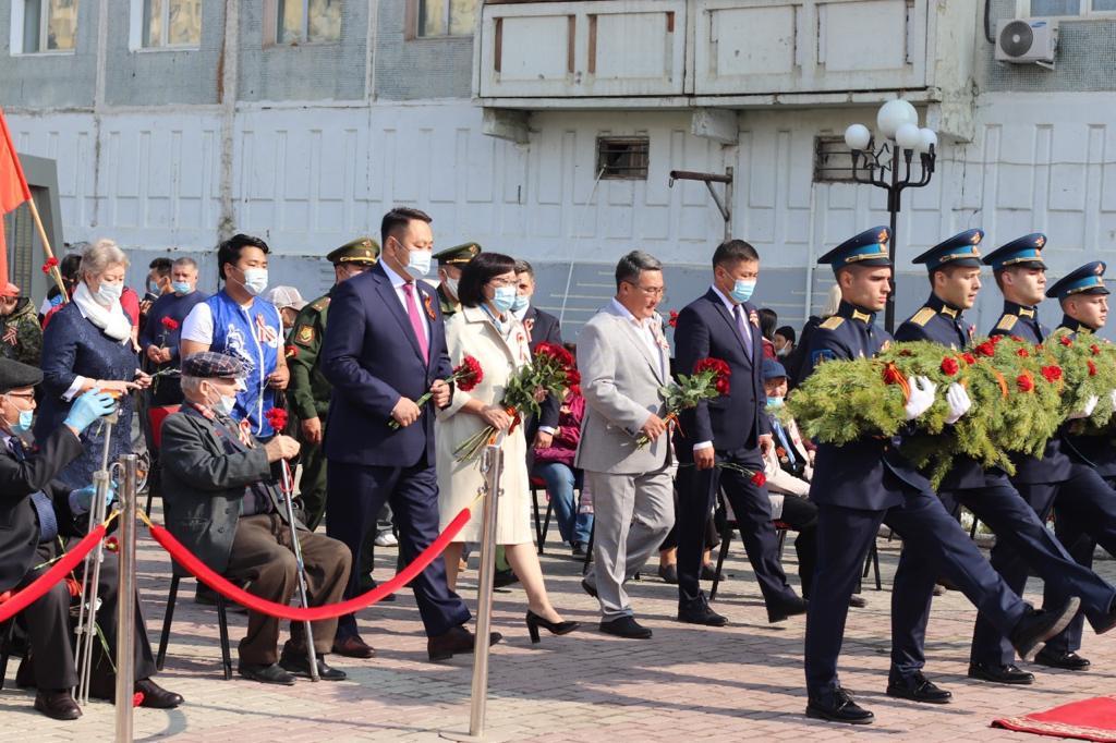 Участники мероприятия почтили дань памяти павшим на полях сражений минутой молчания, был дан залп из орудий. Каждый отметил бесстрашие и героический подвиг воинов-якутян - более 62 000 солдат - сражавшихся за свою малую родину, и за всю страну. Выразили гордость и за разгром Квантунской армии советскими войсками на Дальнем Востоке и отметили важность 75-ой годовщины окончания Второй мировой войны. Каких бедствий и лишений испытала Якутия невозможно представить, а доблесть и храбрость якутских солдат - переоценить, отметил в своей приветственной речи Председатель Якутской городской Думы Альберт Семенов.