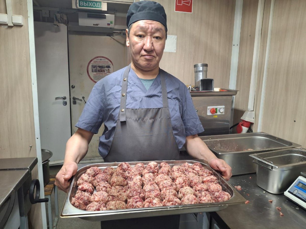 И на этом же участке Талахтах прииска Маят маленький, вахтовом поселке Большая Куонамка, трудится повар с двадцатилетним стажем работы в АО "Алмазы Анабара" Иван Иванович Протопопов.