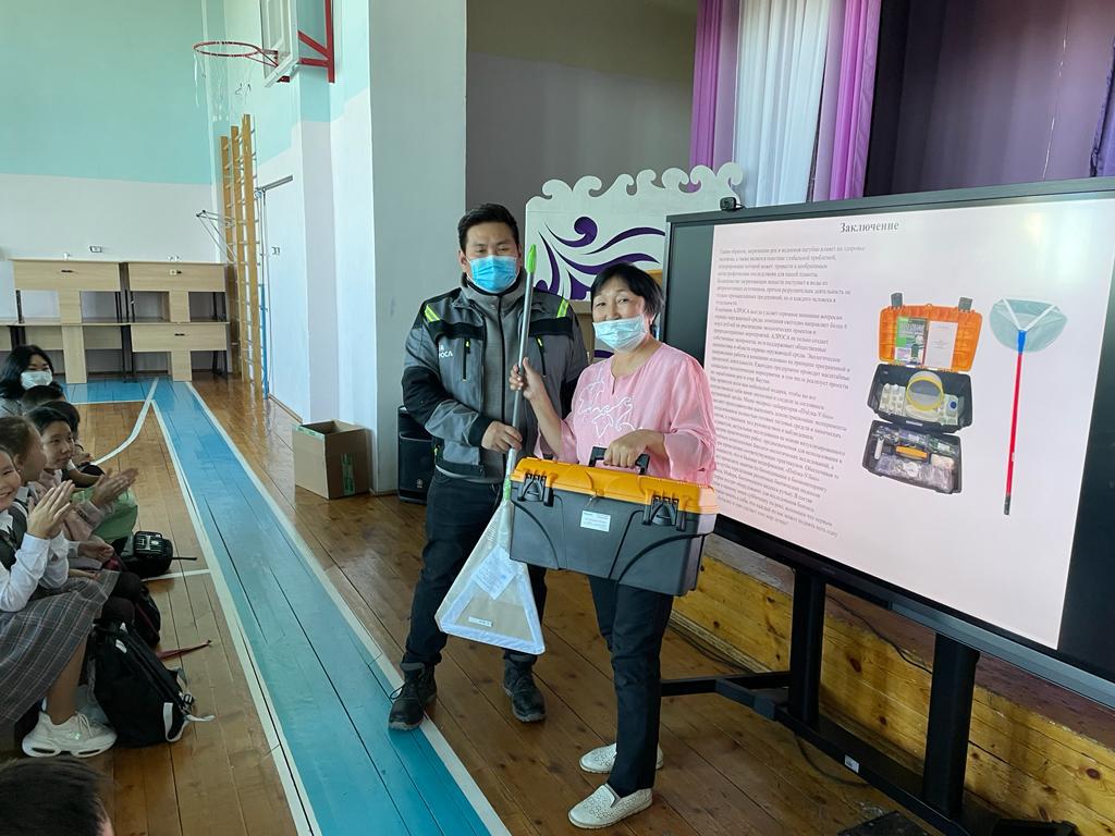 «К нам приехали специалисты Экологического центра АЛРОСА, которые провели классный час по основам экологической грамотности. В конце классного часа нашей школе подарили мобильную аналитическую лабораторию, а учащиеся получили ценные подарки – рюкзаки, сенсорные перчатки, аккумуляторы для телефонов, термокружки. А по завершении мы все отправились на уборку берега реки Вилюй.
