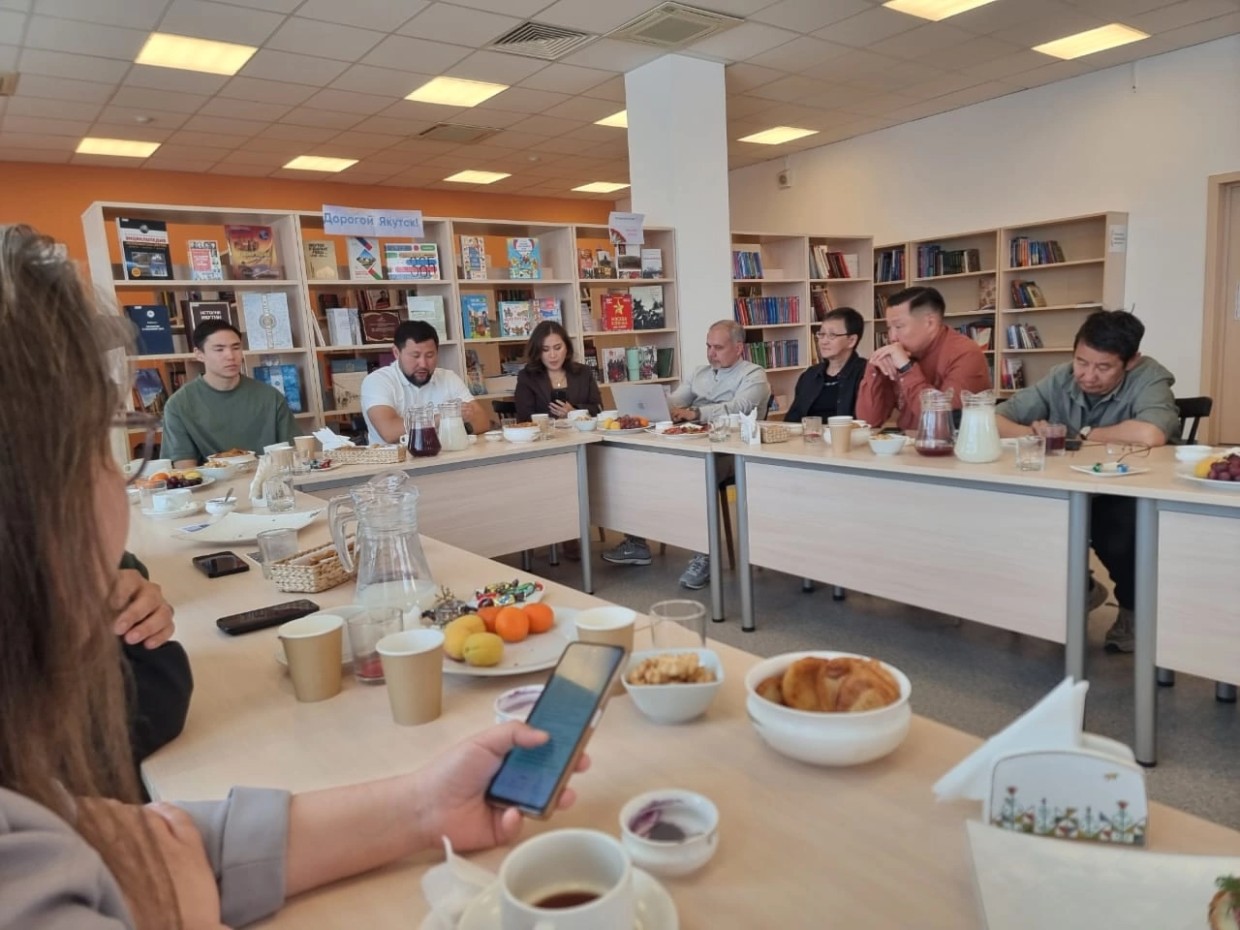 Закончив с растениями, собравшиеся стремительным шагом направились в "SMART-библиотеку", где присели за накрытый стол и завели разговор о проблемах города и идеях по их решению.