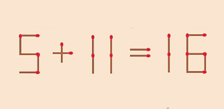 Проверьте свой ответ, надеемся, что вы справились. Ответ не такой простой как кажется на первый взгляд. Вам нужно было число «7» превратить в «11», хитрой перестановкой одной спичкой. В результате у вас должно получиться: «5+11=16».