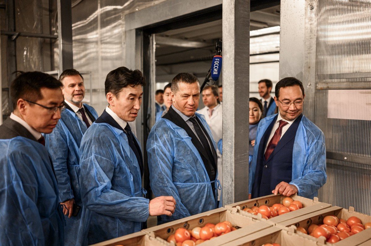 Айсен Николаев и Юрий Трутнев посетили круглогодичный тепличный комплекс «Саюри»