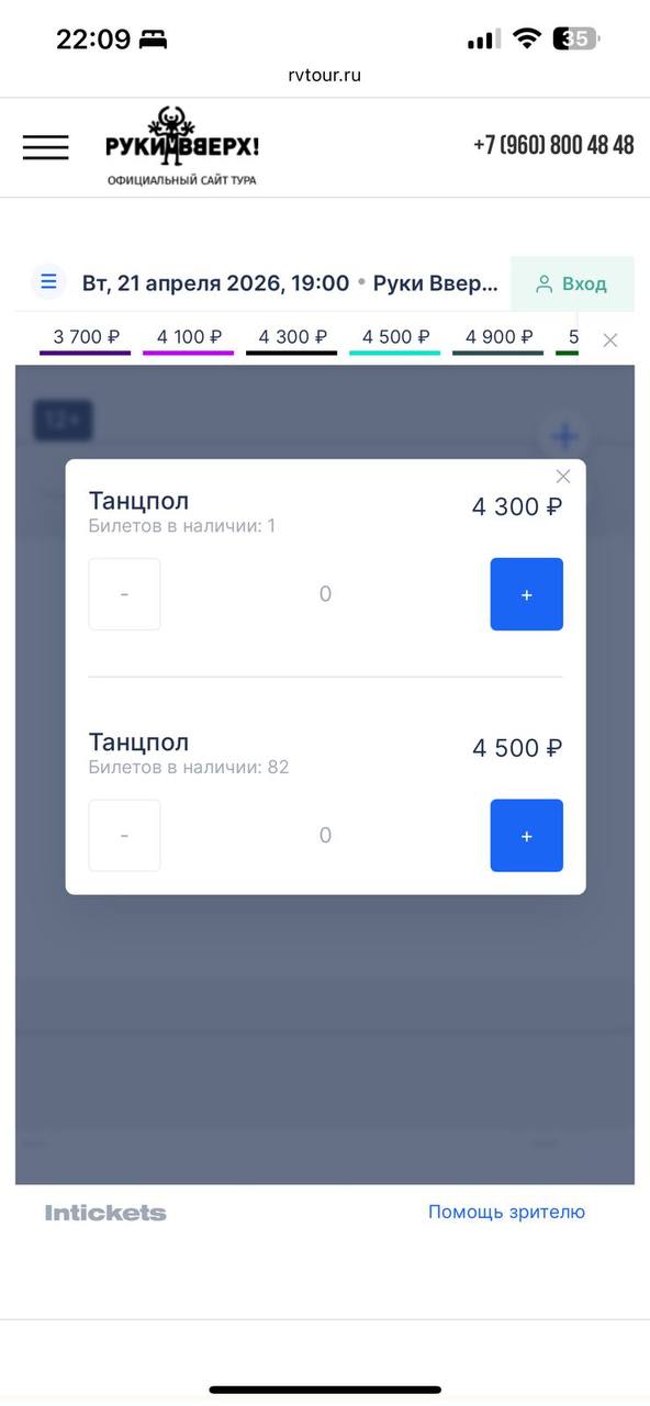 — Подскажите, что происходит с билетами на танцпол концерта "Руки Вверх"? Вчера танцпол с начала продажи стоил 4300 и с каждой минутой дорожает и дорожает, меняется наличие мест, то уменьшается до 1 человека, то увеличивается до 244, это что сбой или какой-то трюк, который не знаю. Сейчас, допустим, стоит 5700 — 5900 уже, и мест в наличии очень также много, — поделился якутянин.