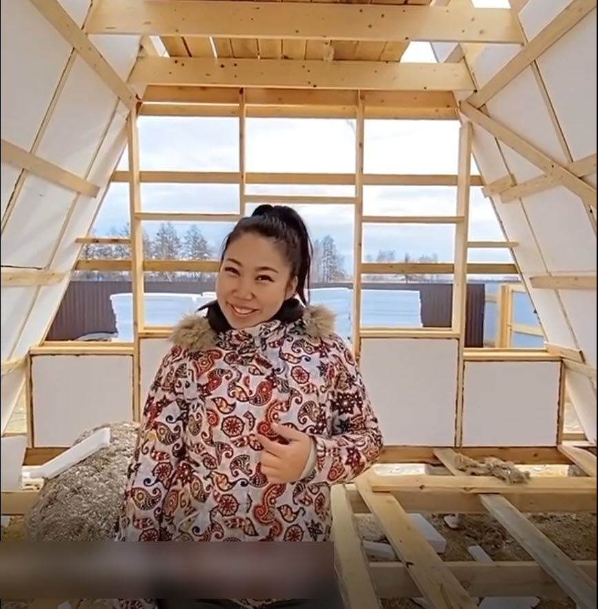 Блогер Эвенкийка вместе со своим молодым человеком строит A-frame house
