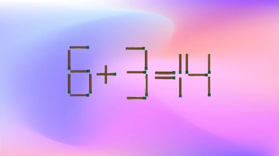 Посмотрите картинку — в примере «6 + 3 = 14» нужно исправить ошибку так, чтобы равенство стало верным. А ходить нужно спичками, не шахматами. Хватит всего одной.