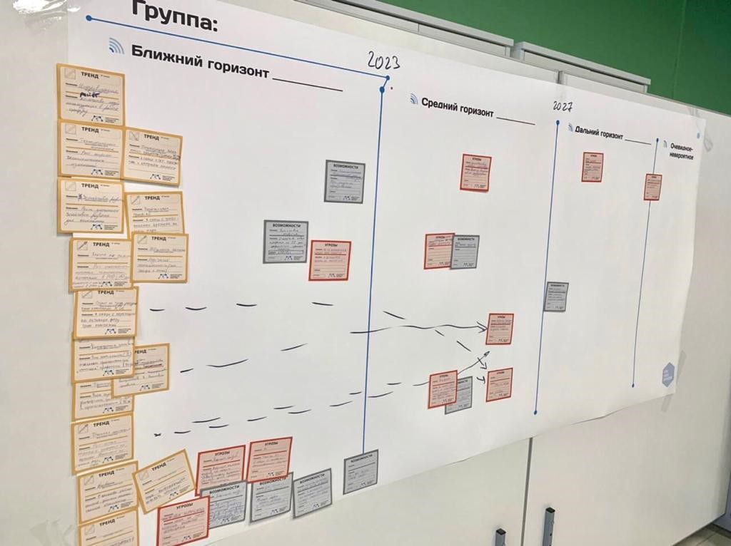 Мероприятие было проведено по методологии Rapid Foresight, получившей широкое распространение и признание, благодаря возможности за короткое время проанализировать в хронологическом порядке основные тренды и тенденции, возможности и угрозы, а также рассмотреть потенциальные последствия. Технология подразумевает высокую вовлеченность участников в процесс, работу в группах, быструю генерацию идей.
