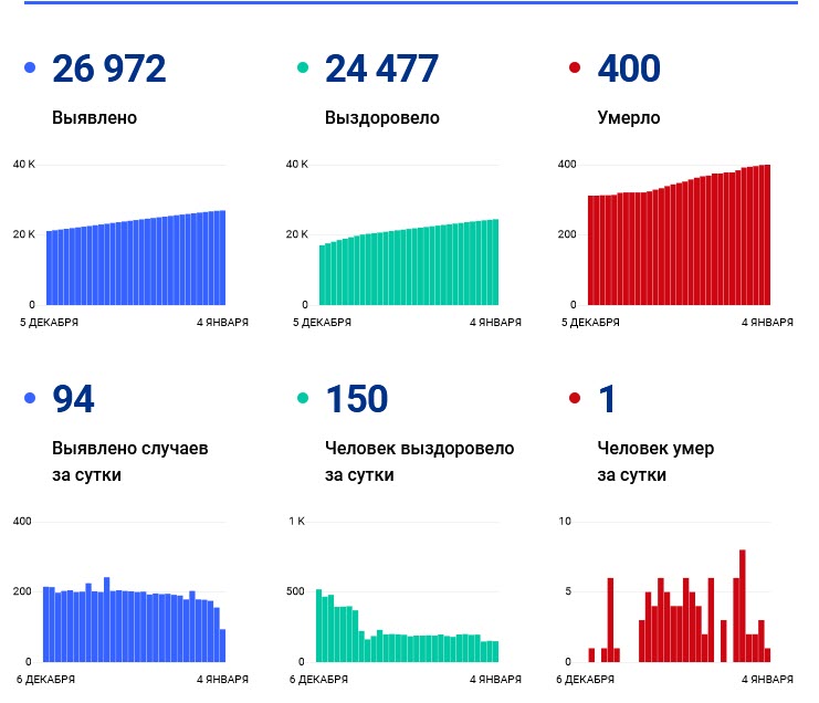 Согласно данным, опубликованным на сайте "Стопкоронавирус", всего коронавирусной инфекцией в Якутии заболели почти 27 тысяч человек. Из них выздоровело 24,4 тыс.