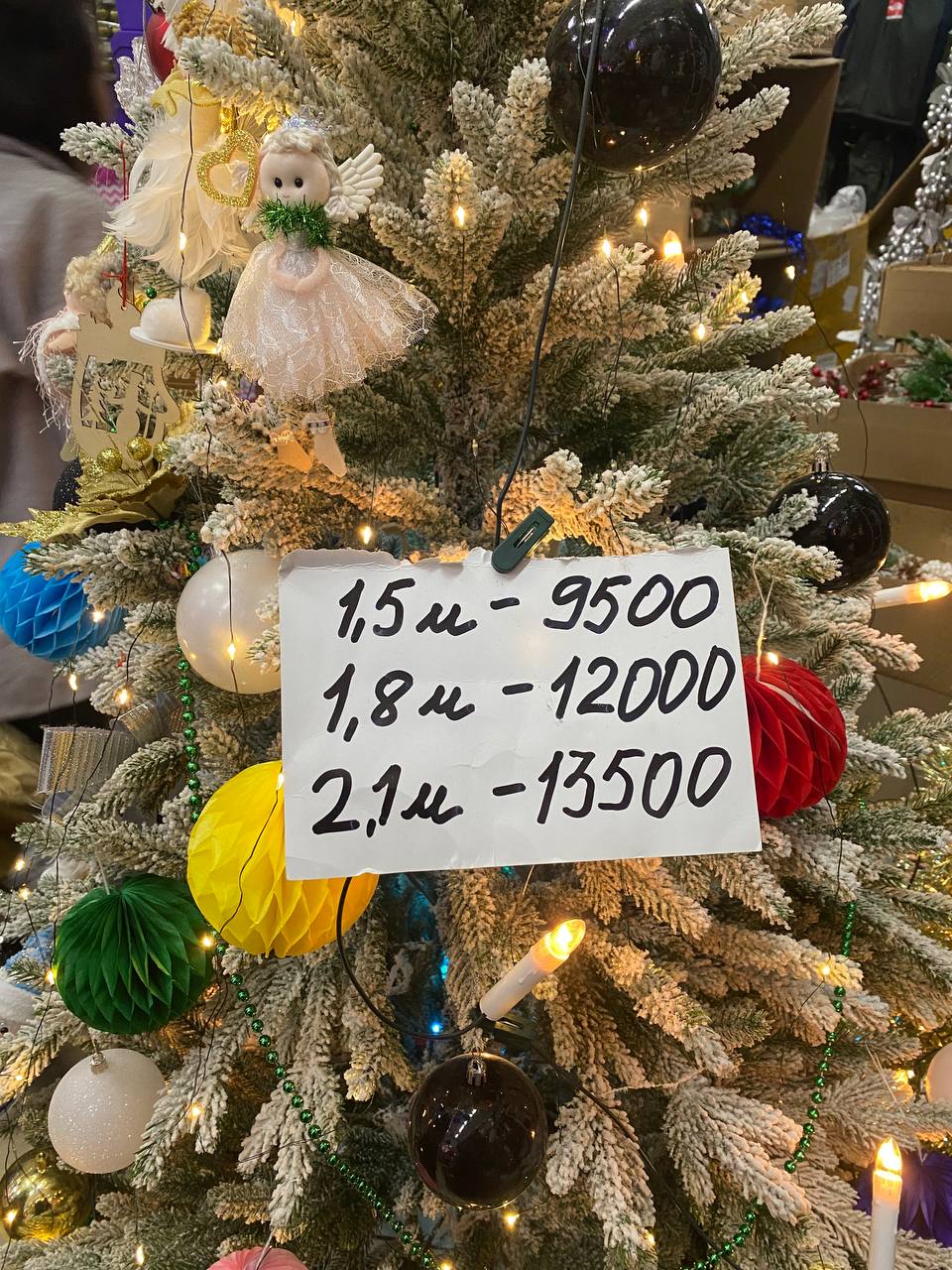 Проверенный факт – искусственные елочки на улице стоят гораздо дороже, чем в павильоне. Например, самая маленькая елка в горшке стоит 3000 рублей, 210 см – 17 000 рублей. Елка такого же размера в главном здании, только белая, стоит 13 500 рублей. 180 см – 12 000, 150 см – 9 500 рублей.