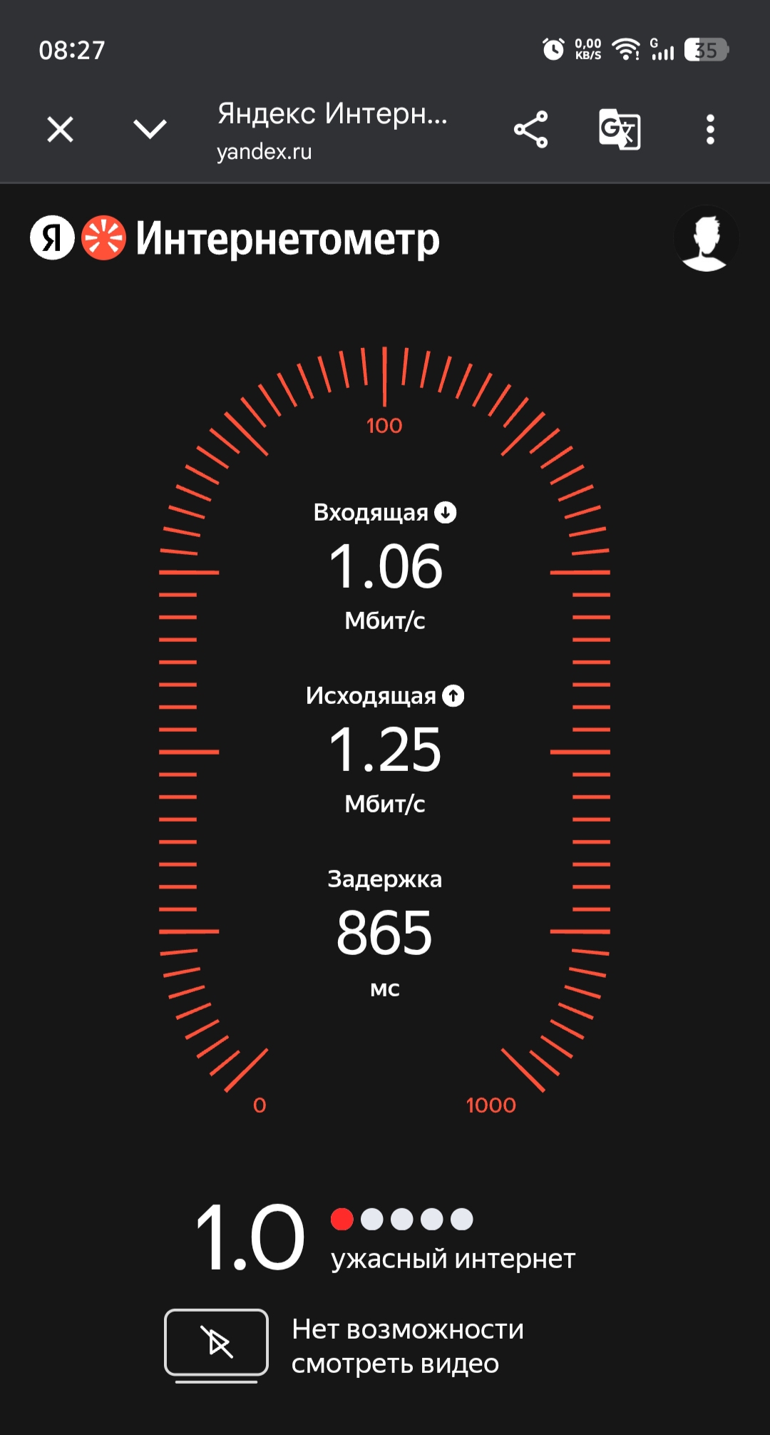 "Скорость — дно. Посмотрите на мой скриншот спидтеста: 1 Мбит/с и задержка 865мс. На ночном безлимите скорость падает до 32 КБ/с (привет из 90-х). Это не интернет, а издевательство в тех условиях, в которых уже плохо".