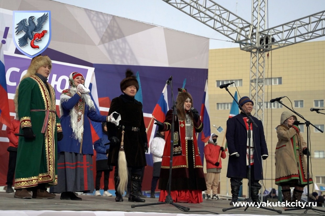 На митинге-концерте выступили народные артисты Республики Саха (Якутия) Алексей и Екатерина Егоровы, народный хор русской песни «Раздолье», исполнители Айгылаан, Сайсары Куо, Куннэй Куо, Константин Степанов, Андреана.