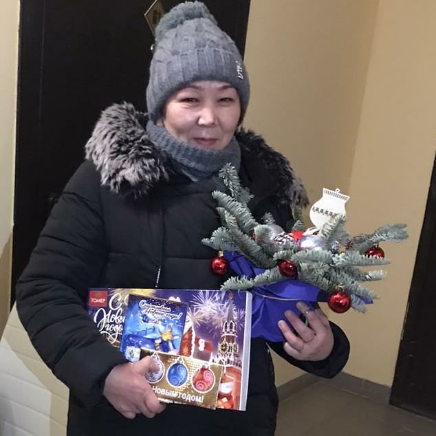 "23 декабря в подъезде дома Жорницкого, 7/32а жители поблагодарили за хорошую работу уборщицу УК ЖКХ «Бюджетник» - Нурилю Аманбаеву, торжественно поздравила староста МКД Ирина Гладкина и вручила работнику премию - 21 000 руб, собранную жителями 63 квартир, представитель УК Елена Николаева подарила новогоднюю композицию из живой ели и коробку конфет".