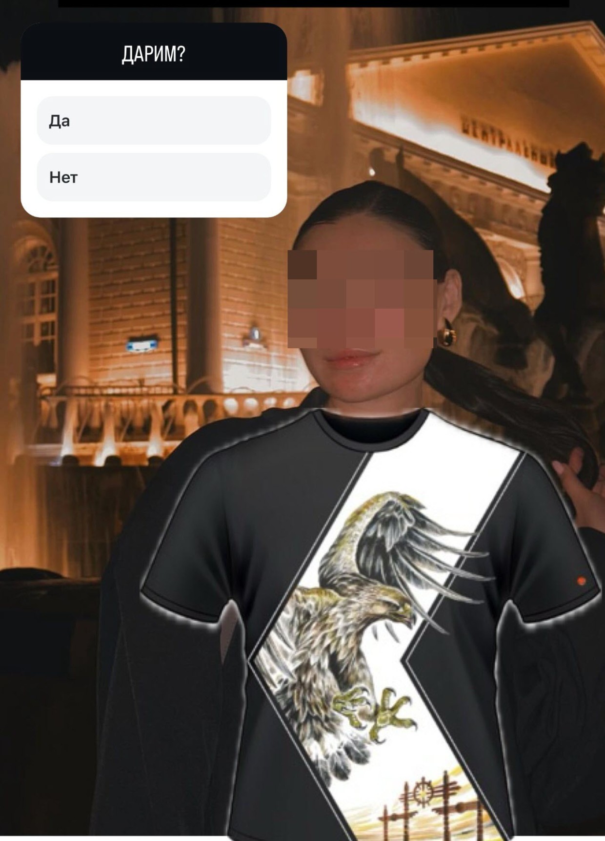 Бренд TANAS в своем блоге опубликовал фото Алены с наложенной сверху черной футболкой с орлом (на главном фото) и провел опрос, где предложил подарить это изделие девушке. Алена обратилась к бренду: «Ненормальный движ уже. Вы не думаете, что это буллинг?» TANAS ей ответил: