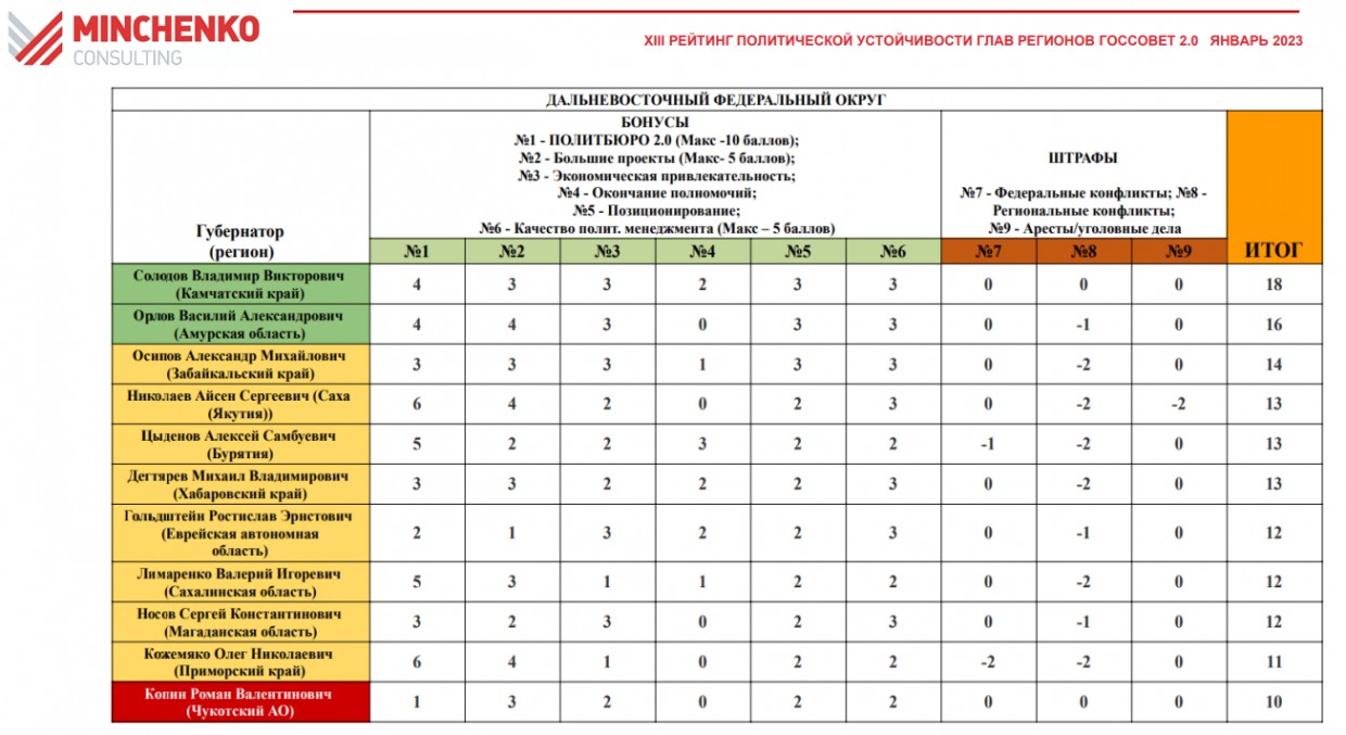 Рейтинг «Госсовет 2.0» по Дальнему Востоку возглавляет бывший премьер-министр Якутии, губернатор Камчатского края Владимир Солодов.