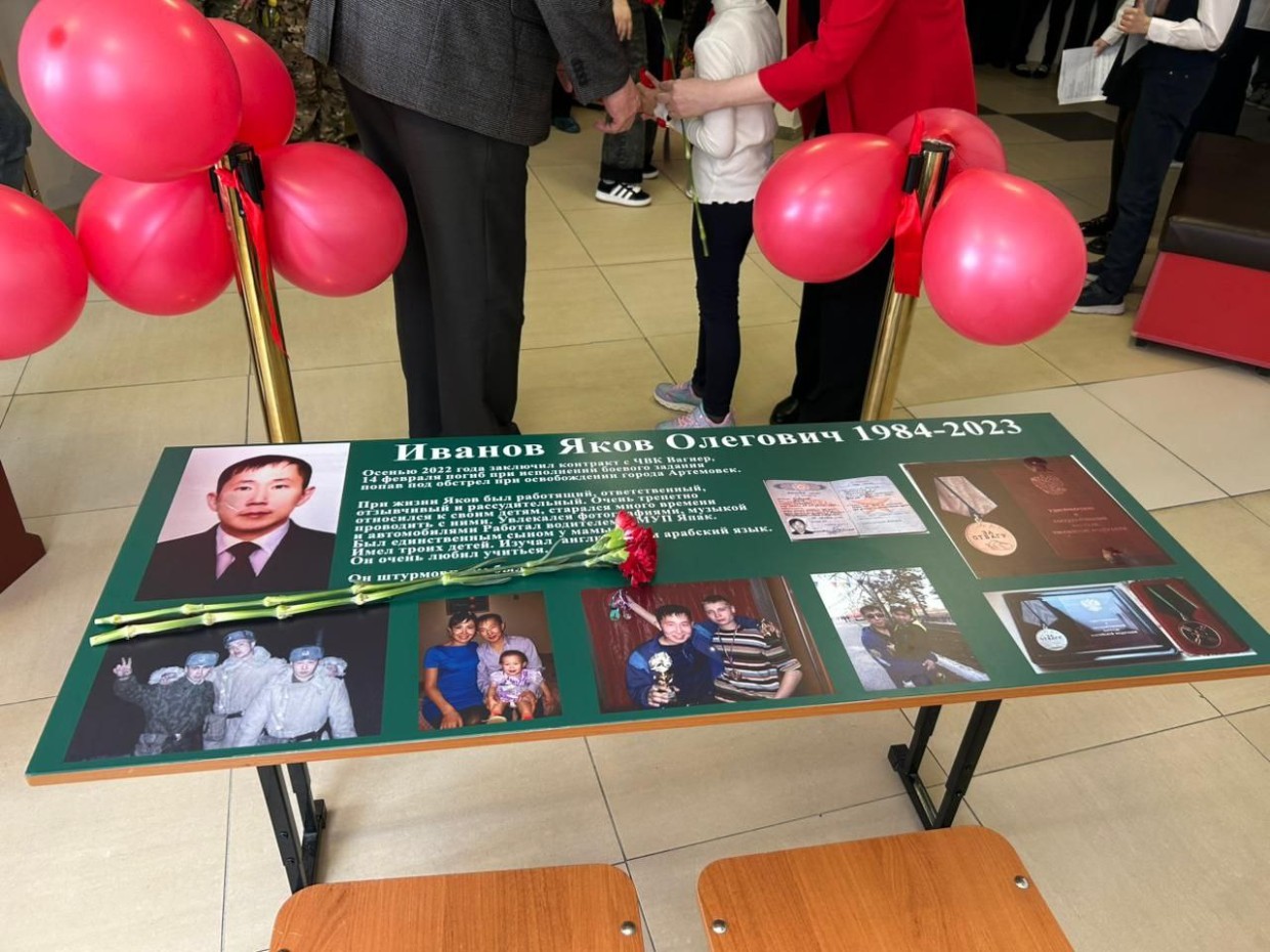 В эти дни в средней школе №35 Якутска была торжественнооткрыта «Парта героя» - участнику СВО Иванову Якову Олеговичу, ушедшему на СВО осенью 2022 года и погибшему при исполнении долга в феврале 2023 года в боях за Бахмут.