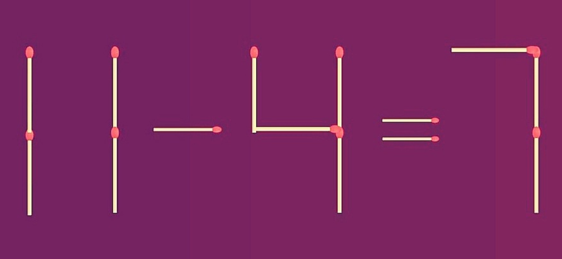 Ответ был далеко не простой. Вам нужно было взять спичку из числа «4», и переставить ее в «11». Ответ: «11-4=7».