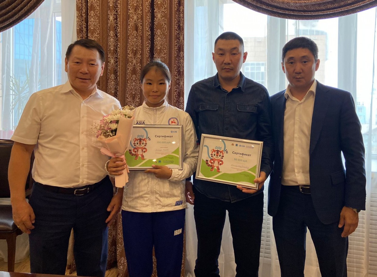 В преддверии Дня физкультурника состоялась встреча представителей Федерации бокса Якутии и АКБ «АЛМАЗЭРГИЭНБАНК» (АО) с юными боксерами, участвовавшими на VII Международных спортивных играх «Дети Азии». Александра Слепцова, Нарыйаана Васильева и Вадим Дербин – все они вернулись на родину с медалями. Успех на приморском помосте был для ребят крайне важен, ведь в этом году летние игры впервые прошли не в Якутии.