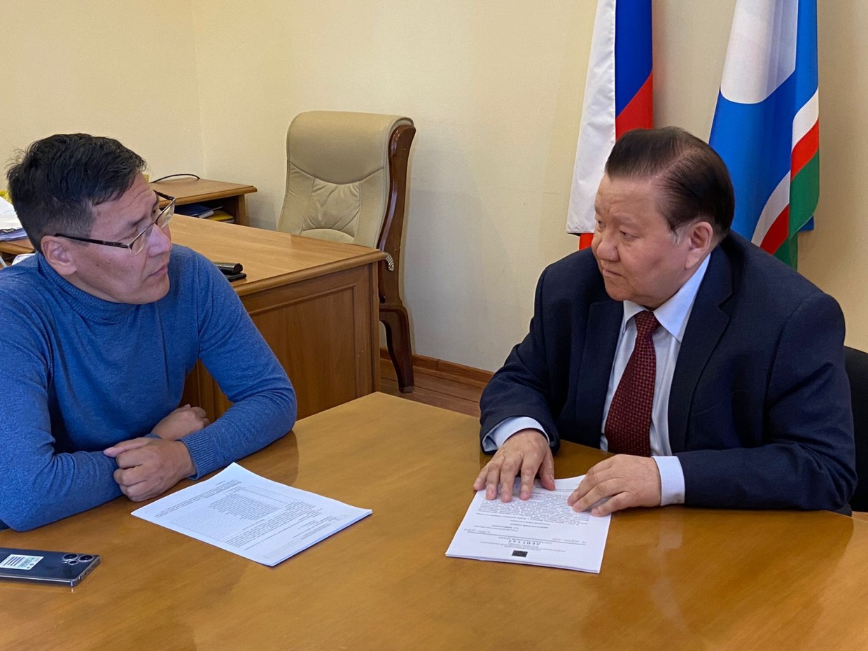 Депутат Госдумы Федот ТУМУСОВ и руководитель Общественного фонда помощи мобилизованным и движения «Якутия с тобой» Айыл ДЬУЛУРХА обсудили проблемы военнослужащих якутян и членов их семей.