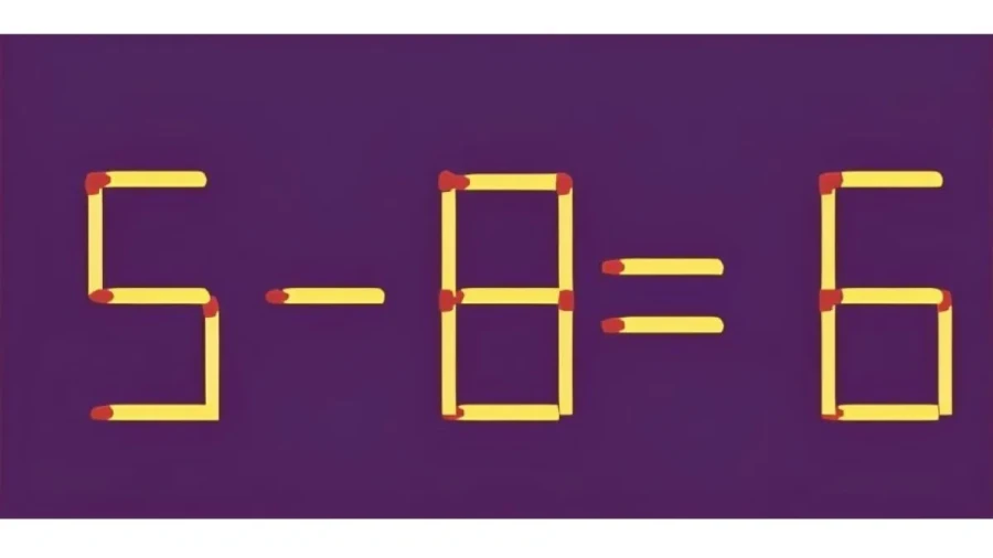 На иллюстрации выше из спичек выложено математическое уравнение, «5-8=6». В нем допущена ошибка, уравнение не верно. Ваша задача использовать всего одну перестановку, и получить правильное уравнение. На эту задачку вам выделяется 50 секунд, попробуйте бросить себе вызов.