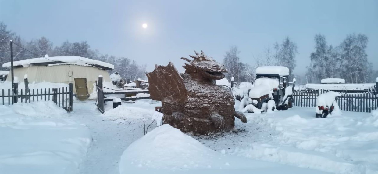 Иван Трофимович за две недели сделал не просто символ года, но и заодно емкость для мусора, которая, вероятно, находится позади дракона. Об этом сообщает тгк @nvk_sakha (перевод @sakhaday)