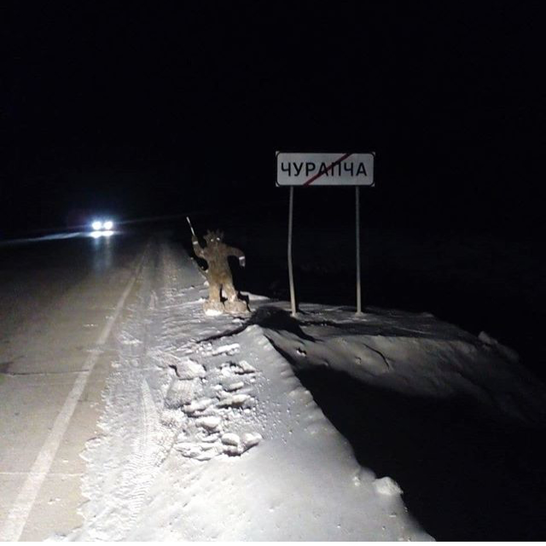 Похоже, это народная забава - накануне Танха устанавливать вдоль трасс фигурки сюллюкюнов - водяных чертей. Так, в 2017 году Sakhaday писал о фигурке чертика из навоза с жезлом и светоотражающими полосками, которую установили у дороги в Чурапчу.