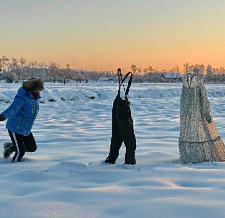 "Отличие Якутии - это наши морозы. Мы ведь все вывешивали мокрую одежду на мороз, и затем заносили ее в таком состоянии. Поэтому мне и пришла в голову такая идея. Думала, что будет интересно смотреться. Серию назвала "Моя Якутия" и приурочила к Танха".