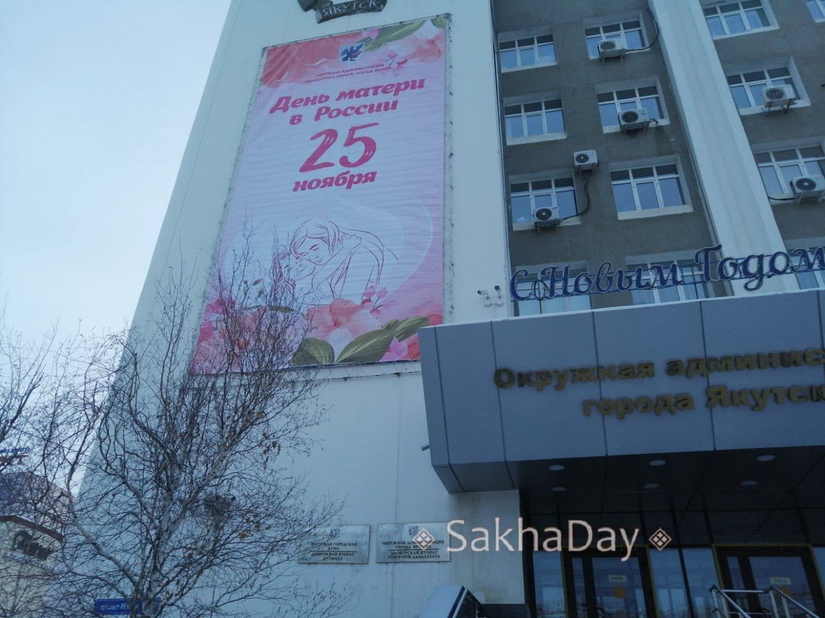 Вчера на здании мэрии появился баннер с поздравлением с Днем Матери в России 25 ноября, передает Sakhaday. Однако в этом году День матери отмечают в последнее воскресенье ноября, а значит 24 ноября.