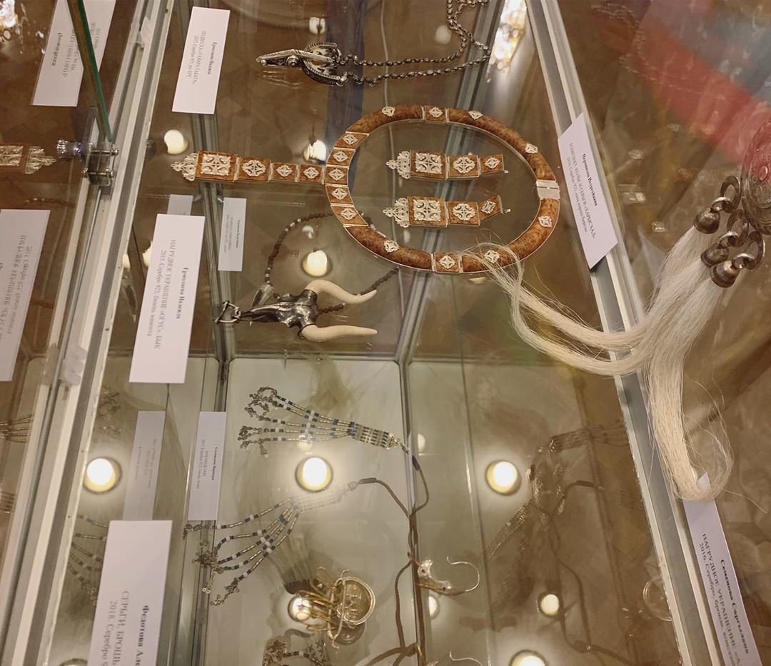 Выставка включает в себя графику, ювелирное и косторезное искусство, свитки, костюмы и большое количество научно-исследовательских трудов АГИКИ. Команда института привезла из Якутска 83 кг экспонатов и за 6 часов смонтировала выставку.