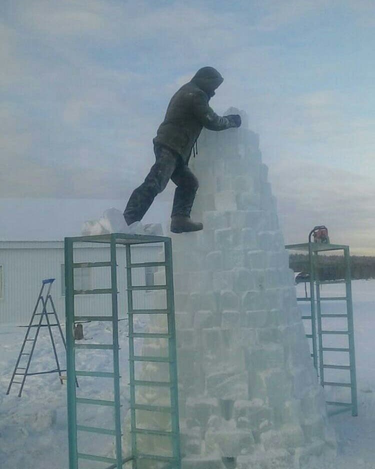 Фотофакт: В селе Троицк сделали оригинальную и необычную ёлку изо льда