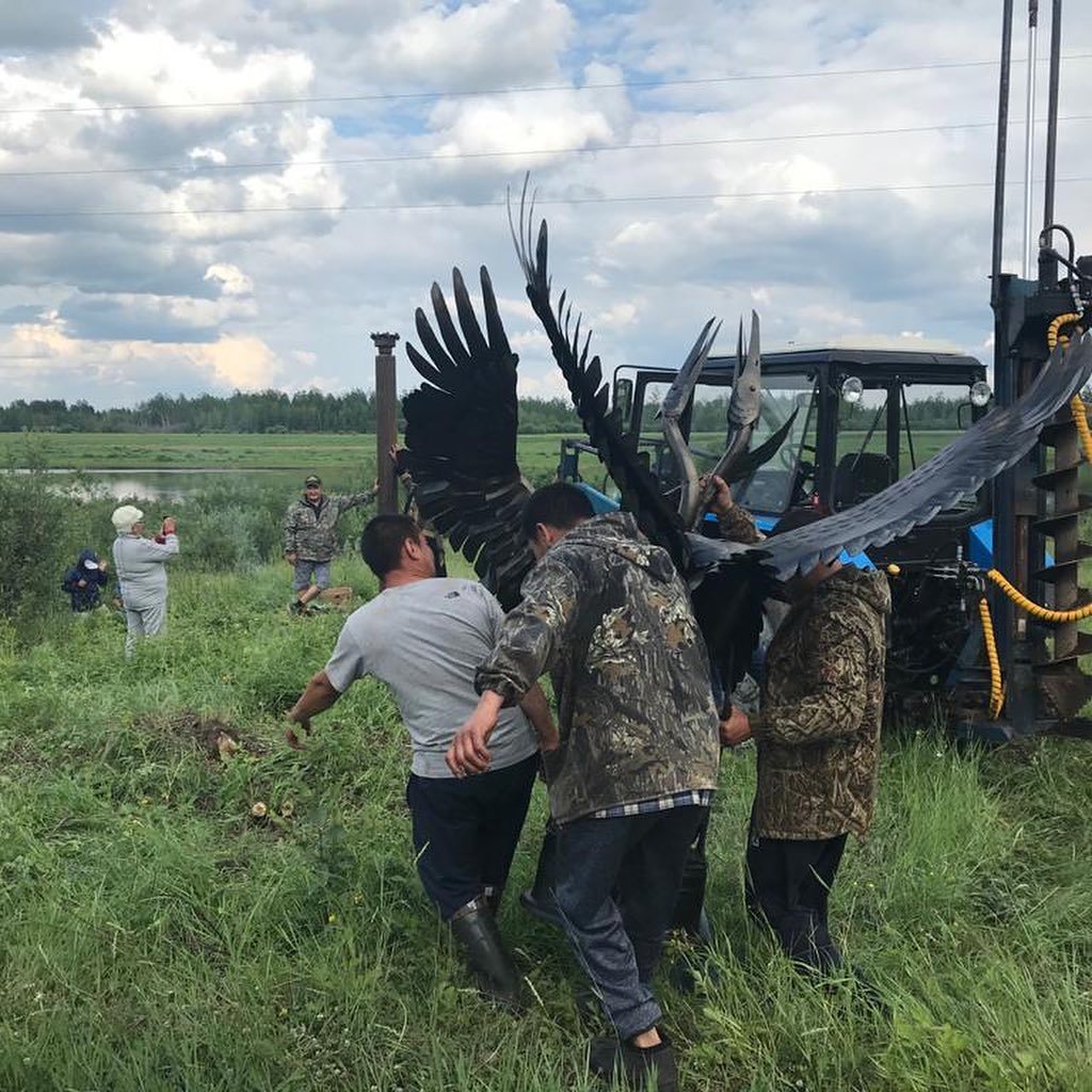 Фотофакт: В Якутии умельцы установили памятник стерху, сделанный из кузова машины