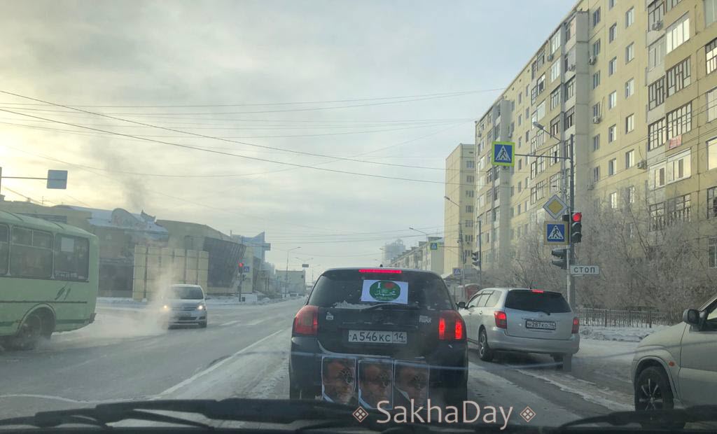 Фотофакт: В Якутске водитель приклеил портреты французского президента с отпечатком ботинка к заднему бамперу авто