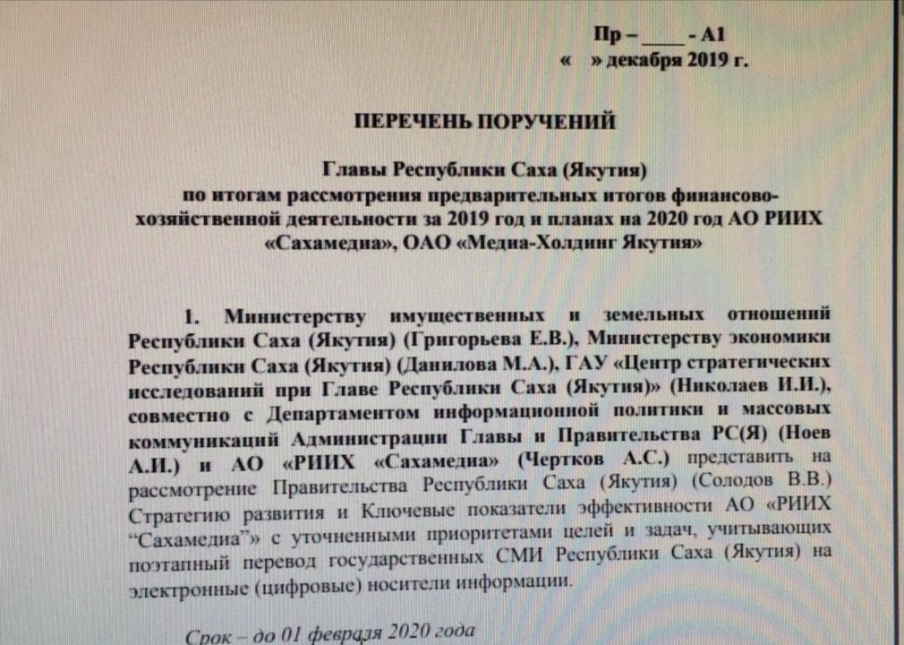 Судя по перечню поручений главы Якутии по РИИХ " Сахамедиа" старейшие газеты "Саха Сирэ" и "Якутию" будут переводить в электронный формат. Многие предположили, что речь идет о закрытии печатных СМИ. Правда, когда это будет, пока не известно.