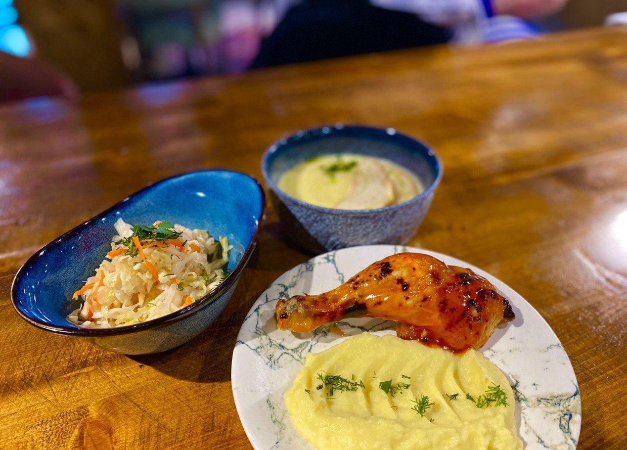 Сырный крем-суп с хлебом, окорочка с картофельным пюре и невероятно полезный в весеннее время салат с квашеной капустой. Немаловажно, "Kitchen" предлагает широкий выбор напитков к бизнес-ланчам. Сохраним интригу нашего "золотого" напитка... Попробуйте угадать в комментариях.