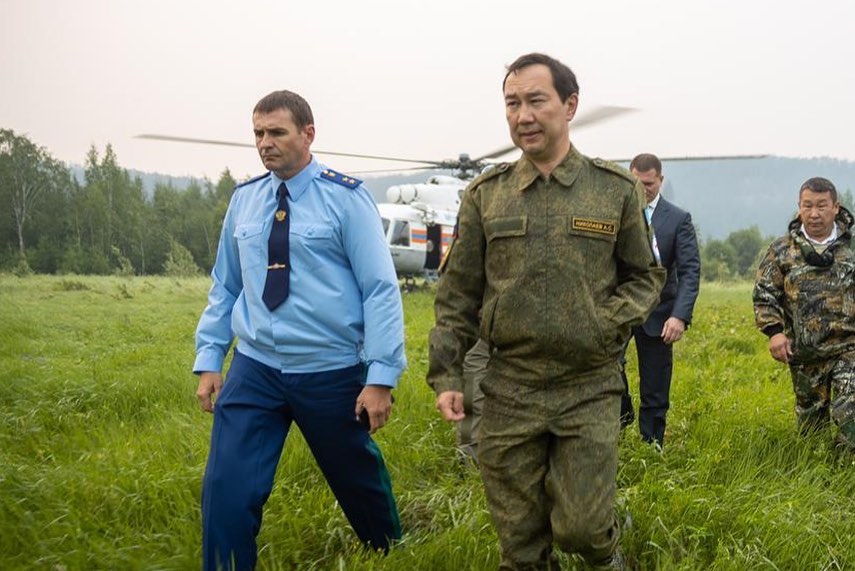 6 июля Глава Якутии Айсен Николаев, Заместитель генерального прокурора РФ Дмитрий Демешин, прокурор республики Максим Попов совершили облёт лесных пожаров на территории Хангаласского района.