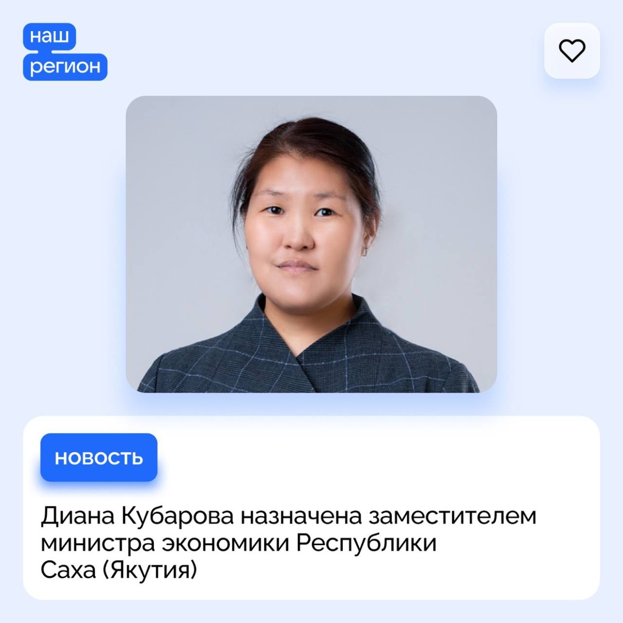Диана Терентьевна Кубарова назначена заместителем министра экономики Республики Саха (Якутия).