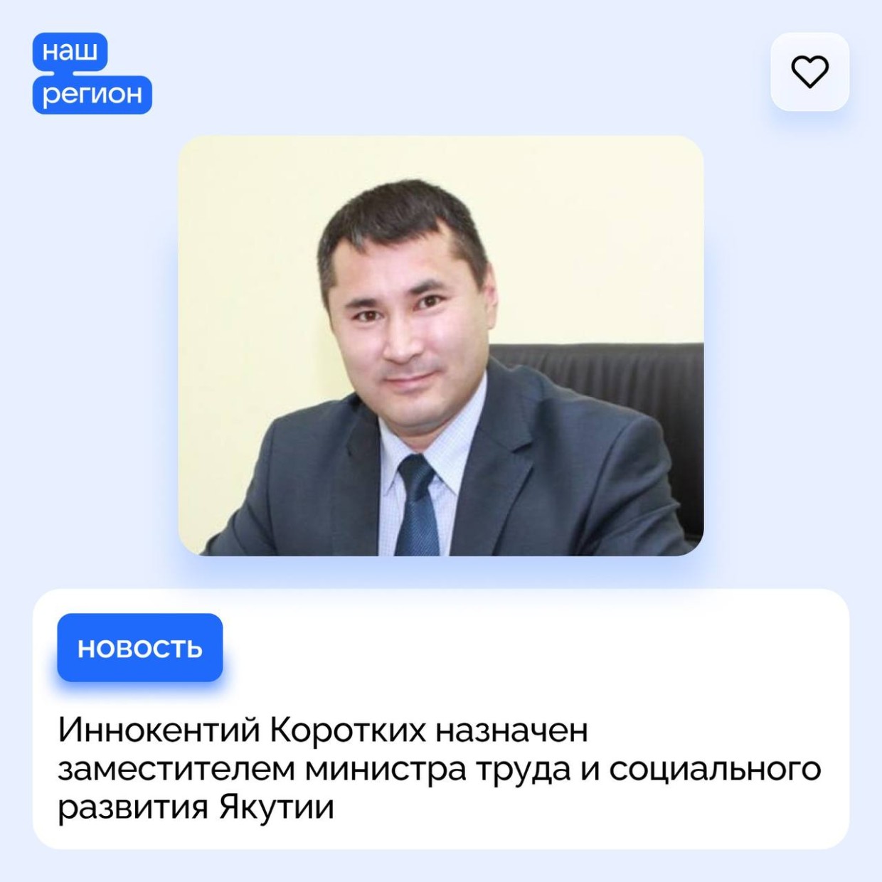 Иннокентий Владимирович Коротких назначен заместителем министра труда и социального развития Республики Саха (Якутия).
