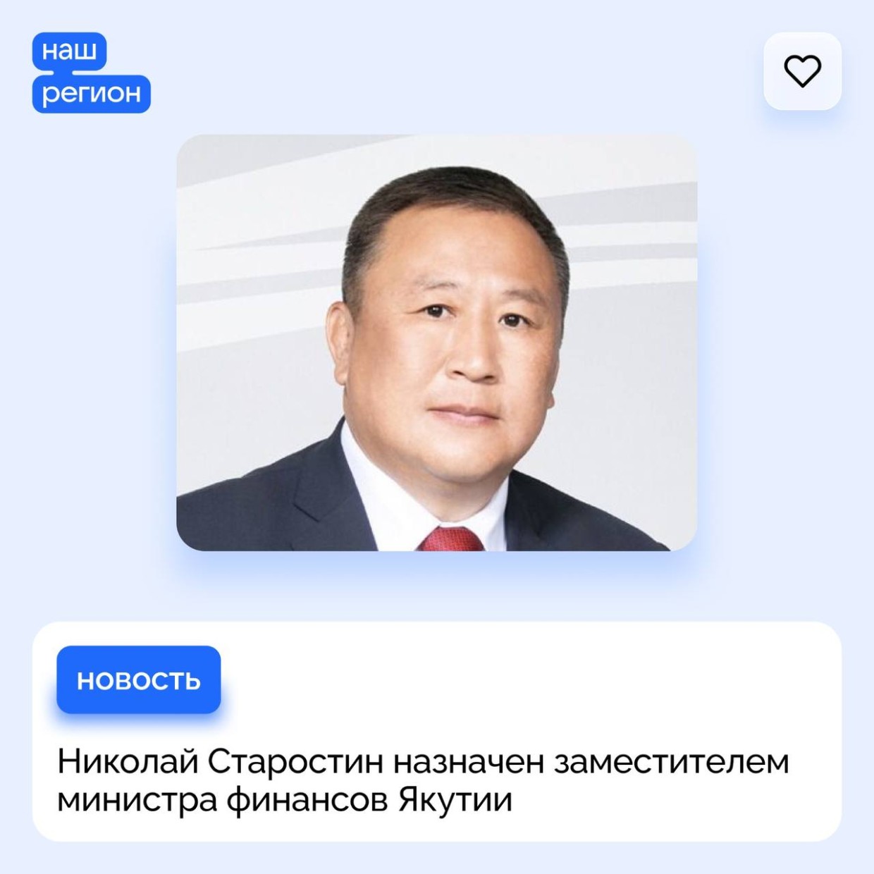 Николай Прокопьевич Старостин назначен заместителем министра финансов Республики Саха (Якутия).