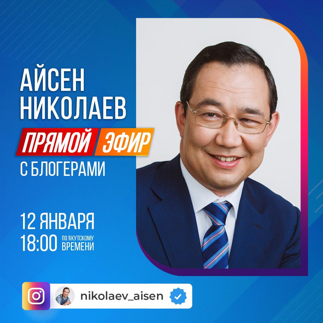 Во вторник, 12 января, глава Якутии Айсен Николаев проведет прямой эфир с блогерами.