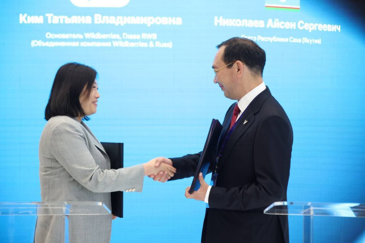 В Якутии откроется склад Wildberries. Гендиректор маркетплейса Татьяна Ким и глава Якутии Айсен Николаев подписали соглашение о сотрудничестве на ВЭФ.