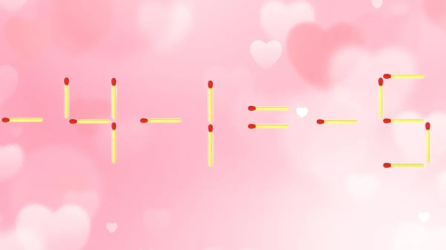 На этом рисунке показан правильный ответ. Вам нужно было сделать одну переменную отрицательной. Убираем у нашей «7» одну палочку и переставляем к первому значению. Ответ — «-4-1=-5». Не расстраивайтесь если у вас не получилось ее решить, вы также можете попробовать и другие.